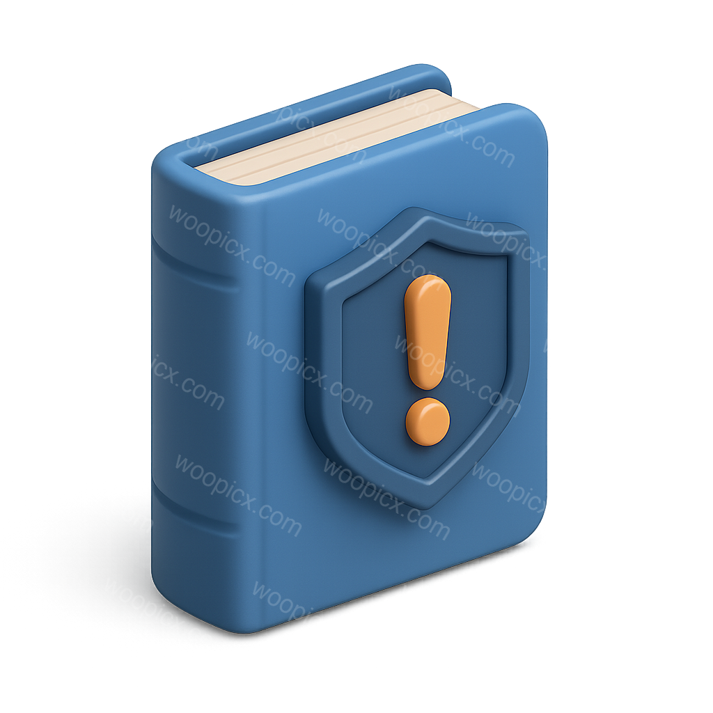 Stylized 3D Book Icon with Exclamation Mark