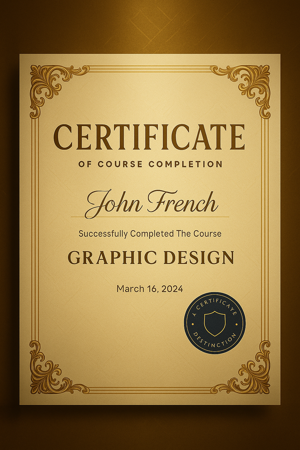 A formal certificate design featuring ornate borders and classic typography, ideal for educational recognition and achievements.
