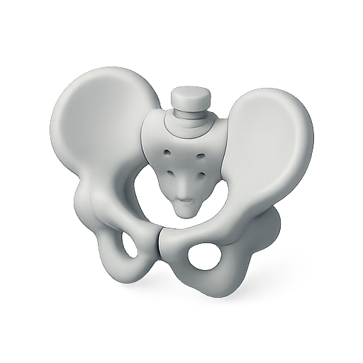 3D stylized representation of a human pelvis, designed for educational or medical purposes. The model features smooth lines and a minimalist aesthetic, suitable for anatomy studies.