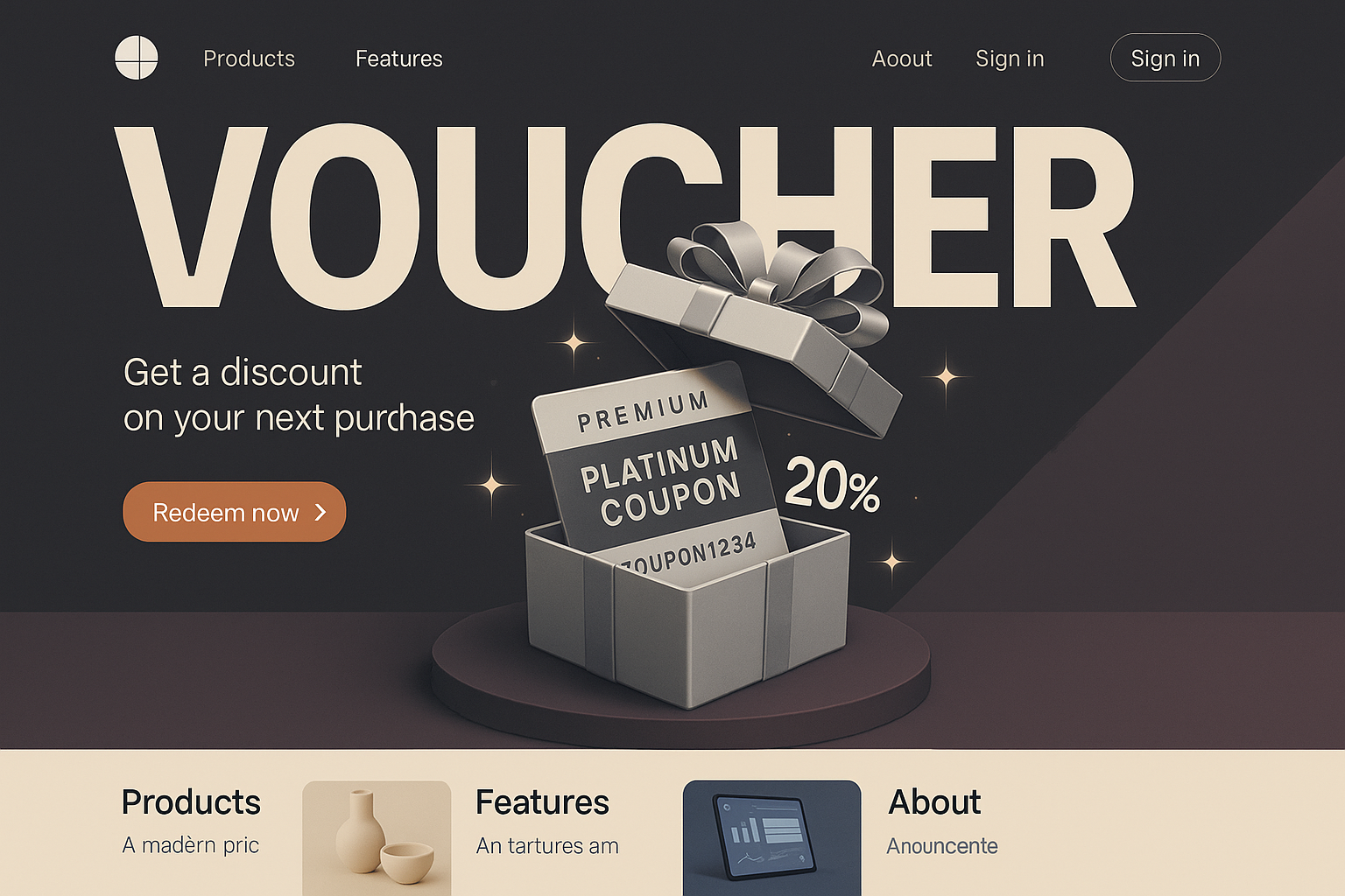 Stylish 3D Platinum Coupon Gift Voucher on Landing Page