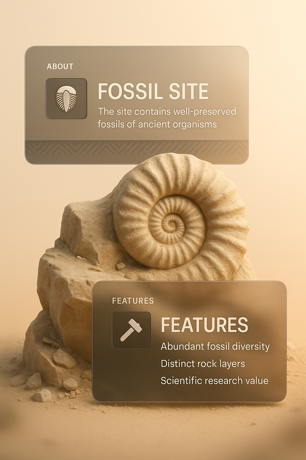 Fossil Site Design with 3D Illustration and Informative Blocks