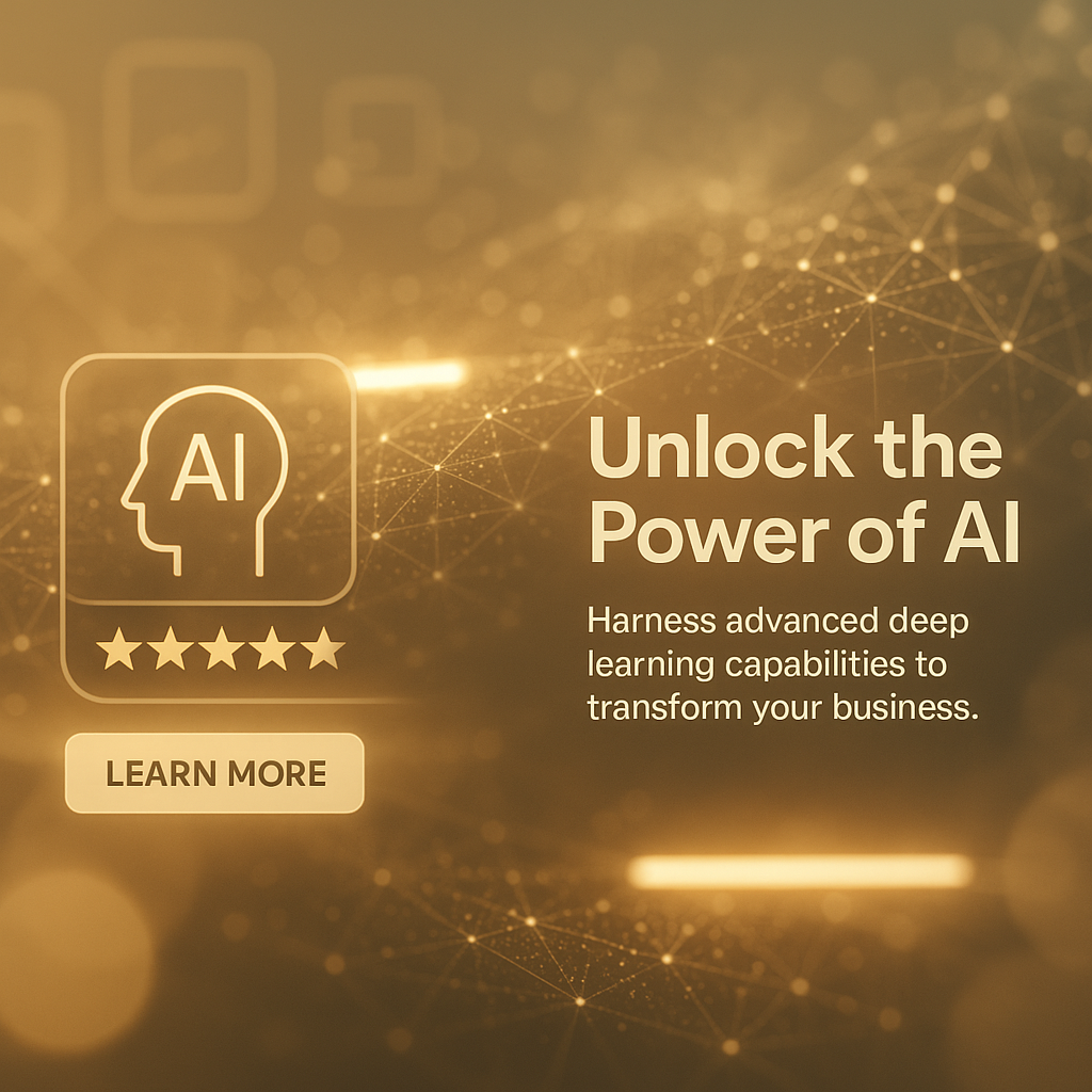 Engaging promotional image highlighting AI capabilities with a modern design, ideal for tech businesses and marketing campaigns aimed at digital transformation.