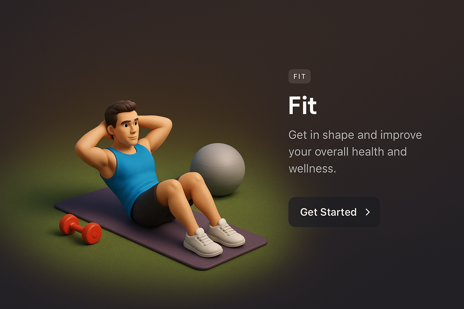 A detailed 3D scene depicting a fitness theme with a character exercising. The background features a smooth gradient, enhancing the visual appeal and realism.