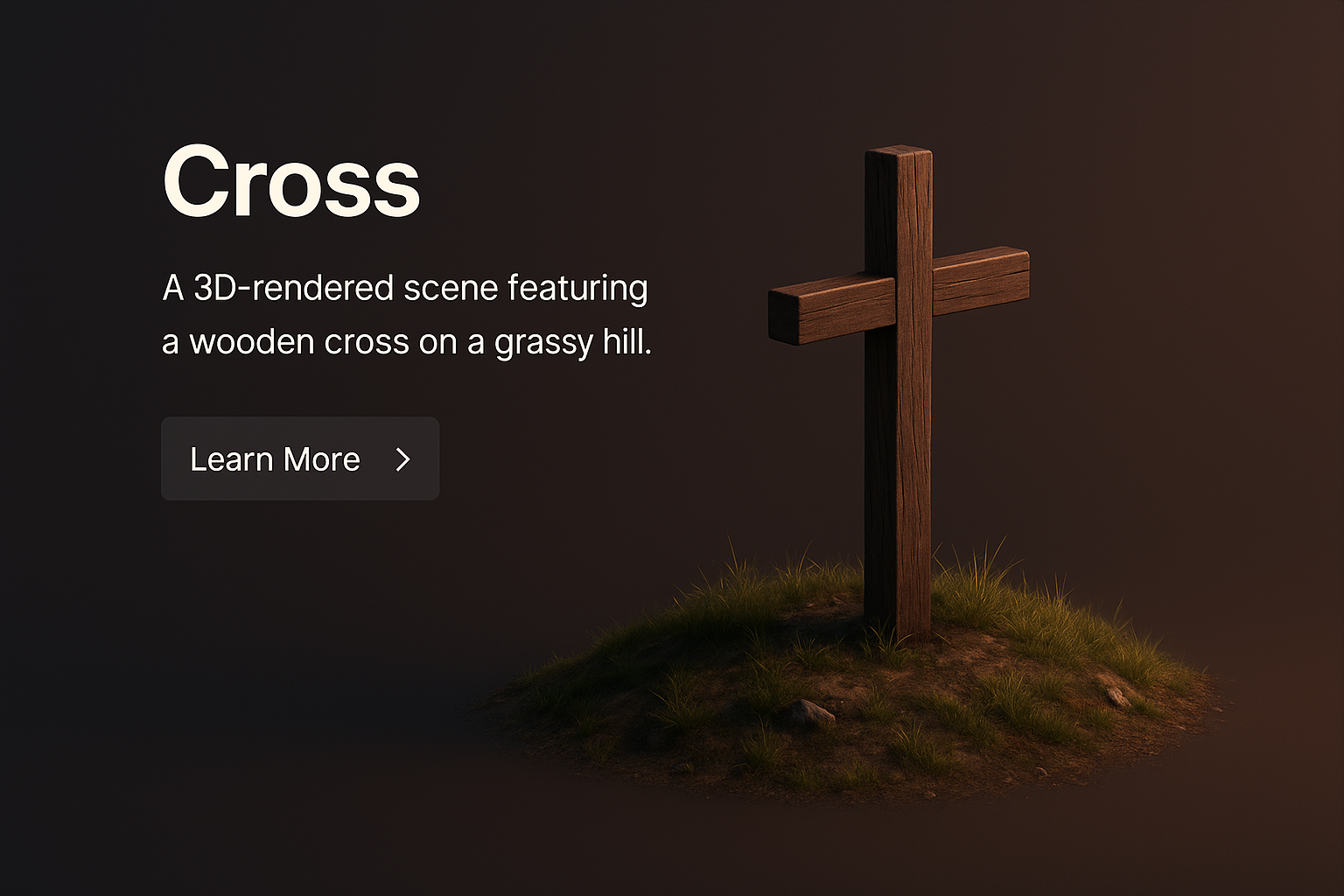 /Collection: /by davooda/Type: PNG/This image features a realistic 3D scene of a wooden cross placed on a grassy hill, set against a dark gradient background. Text elements are designed to be small and readable.