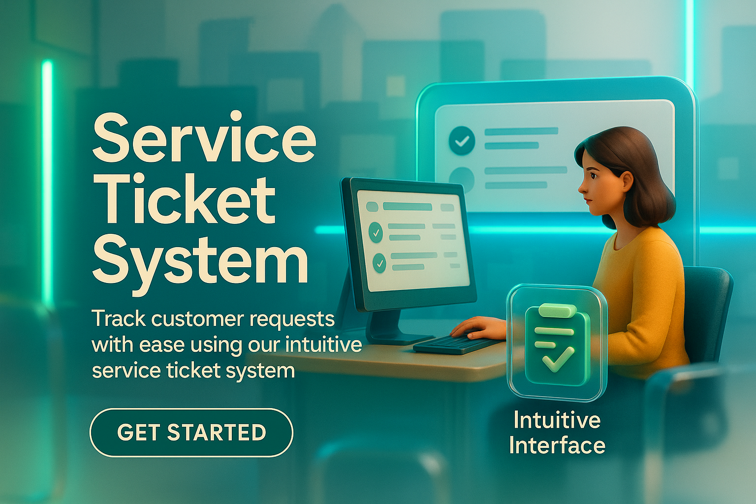 Promotional Banner for Service Ticket System with User Interaction