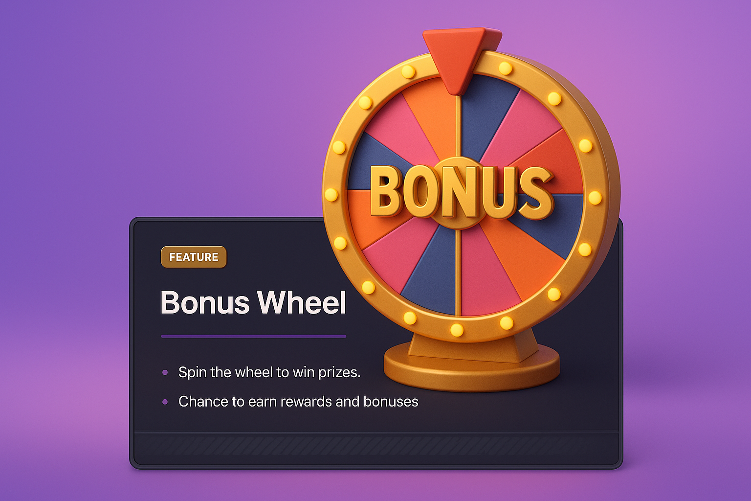 /Collection: /by davooda/Type: PNG/A colorful 3D illustration of a bonus wheel set against a gradient background. Features include a dark panel with text highlighting the wheel's purpose, enhancing its appeal.