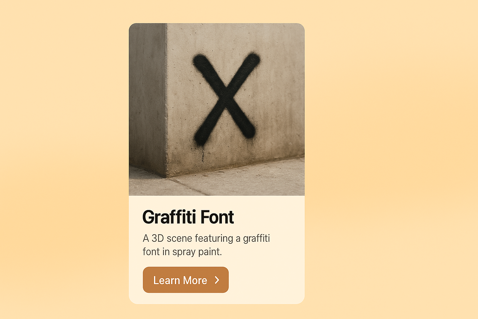 A creative 3D representation of a graffiti font 'X' in black spray paint on a textured wall. The scene is designed to give a zoomed-out view, showcasing the graffiti in a broader context.