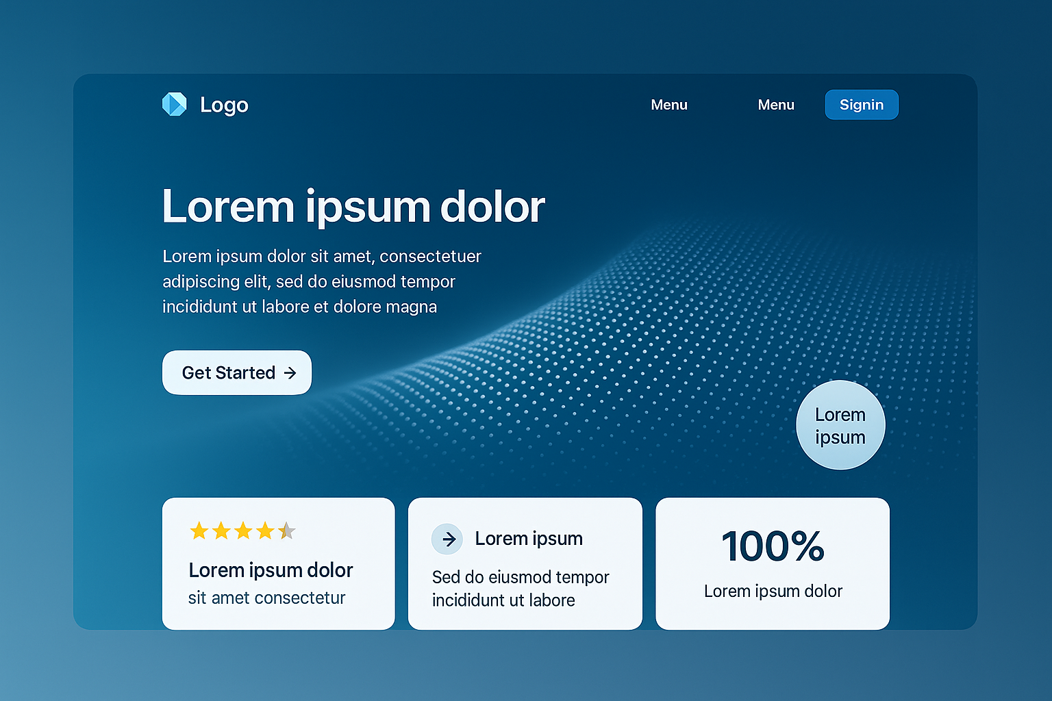 /Collection: /by davooda/Type: PNG/A visually striking landing page layout featuring a geometric logo, action buttons, and engaging content elements. The design emphasizes realism with layered visuals.