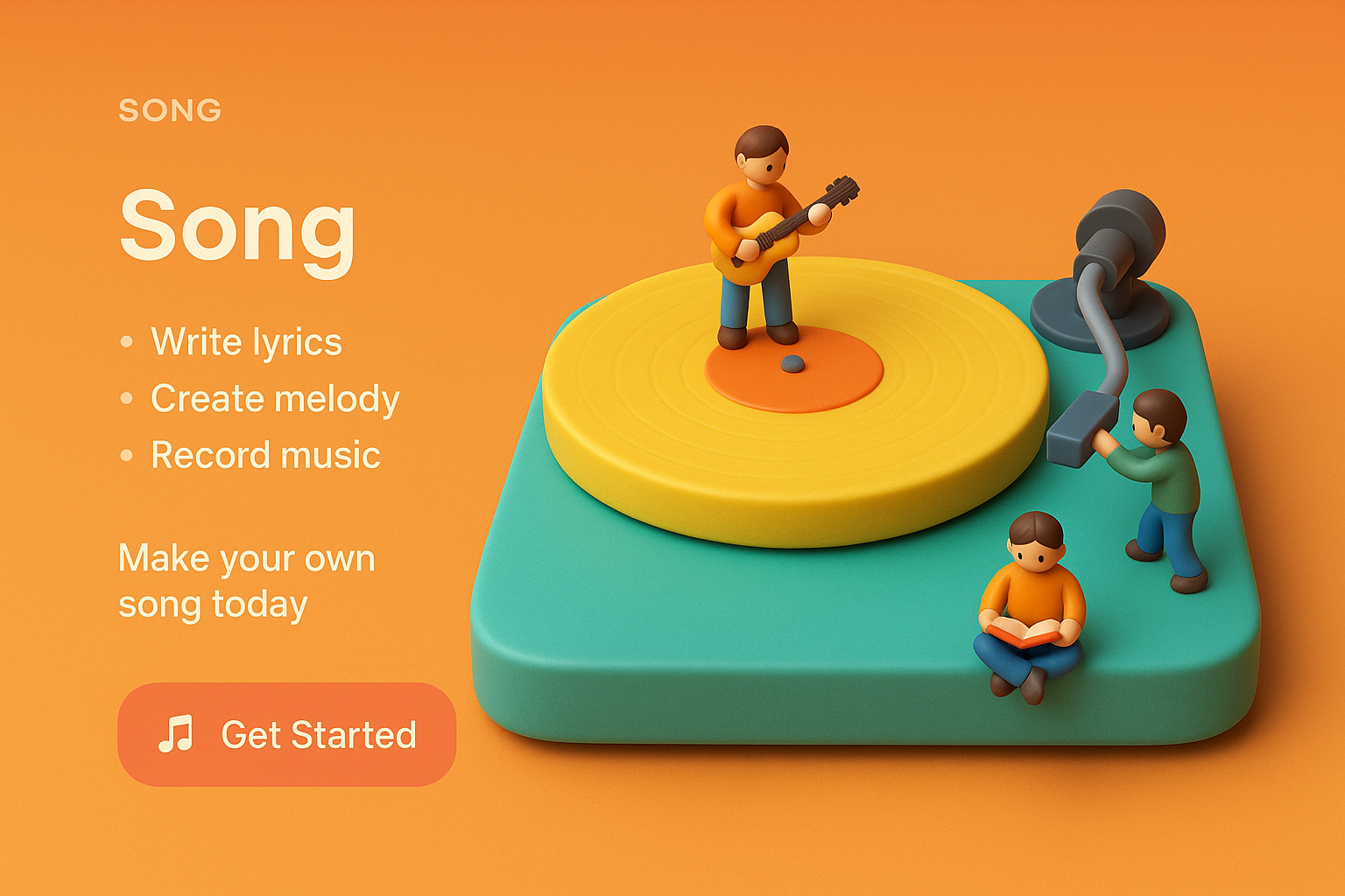 Colorful 3D Scene Featuring Miniature Musicians and Record Player