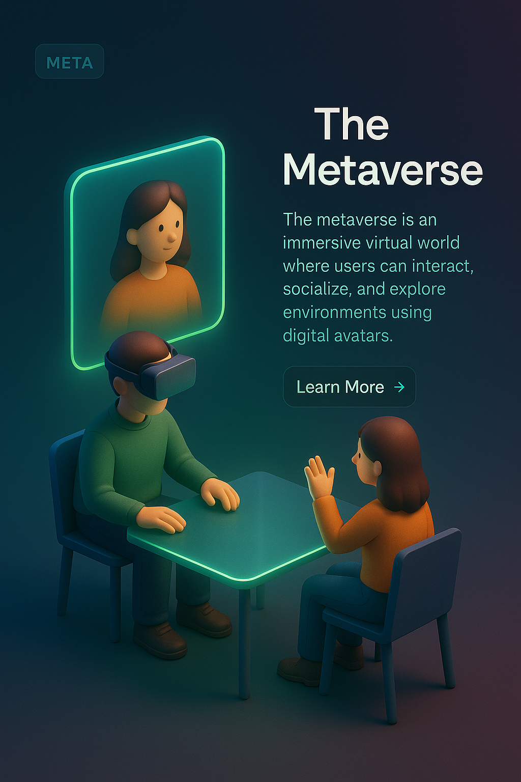 /Collection: /by davooda/Type: PNG/A stylized 3D scene featuring two characters engaging in a virtual reality experience. The background is dark with neon accents, creating a foggy ambiance that enhances the immersive feel.