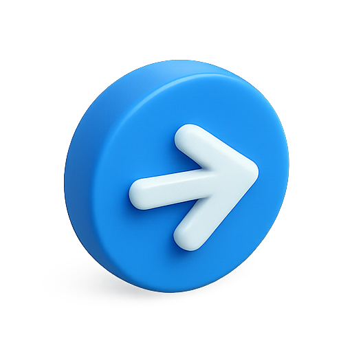 Stylized 3D icon featuring a blue circular button with a white arrow design, ideal for digital interfaces and applications. The modern design makes it suitable for tech-related branding.