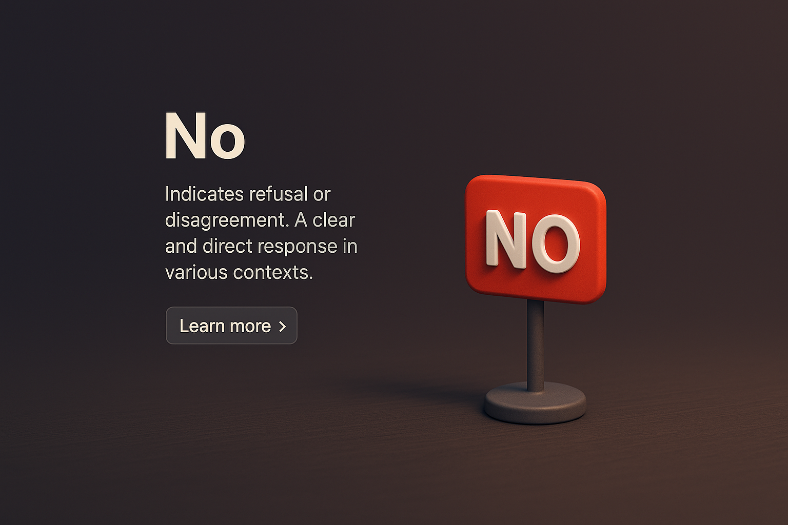 /Collection: /by davooda/Type: PNG/A zoomed-out 3D scene featuring a 'No' sign, symbolizing refusal. The design includes a dark gradient background, with legible text blocks and an action button, creating a cohesive visual.