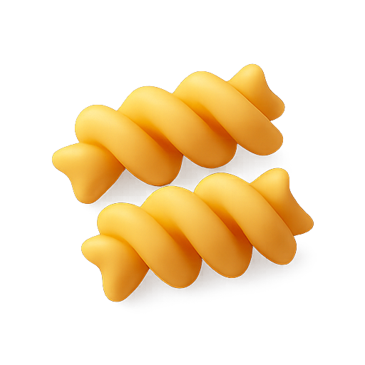 A detailed 3D rendering of twisted pasta shapes, showcasing smooth textures and vibrant color, ideal for culinary or food-related projects.