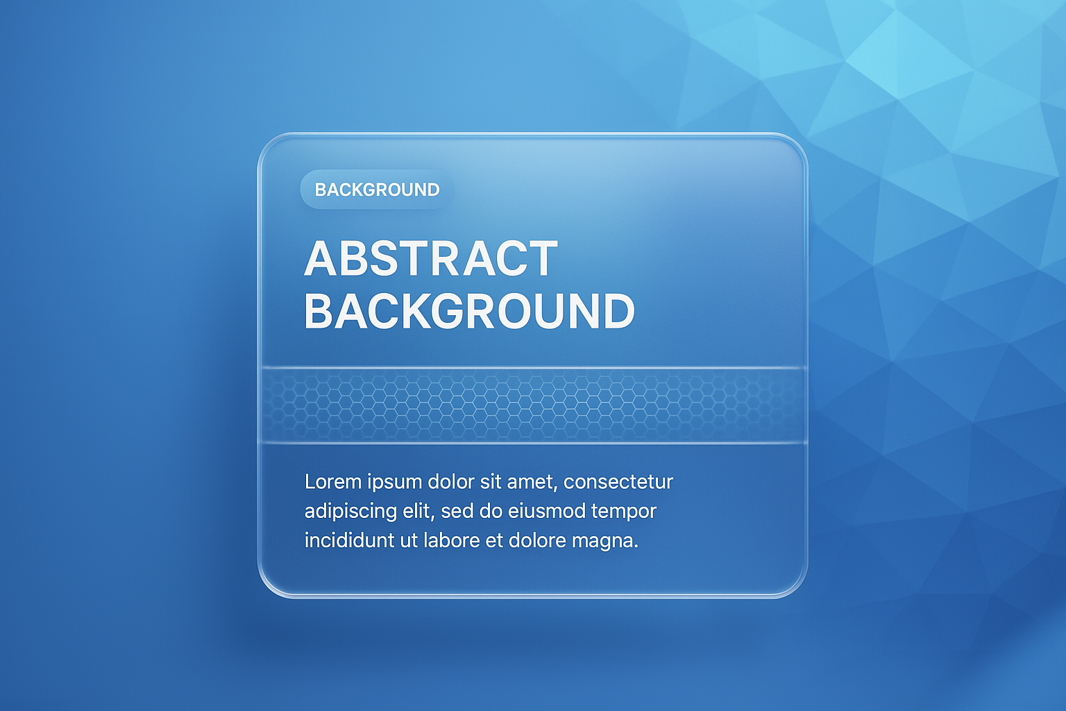 /Collection: /by davooda/Type: PNG/This image features an abstract blue background with a geometric triangle pattern. It includes a translucent overlay with text and a hexagonal design, creating a modern aesthetic.
