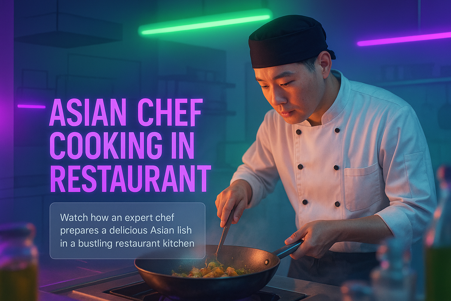 Dynamic Restaurant Cooking Scene Featuring Asian Chef