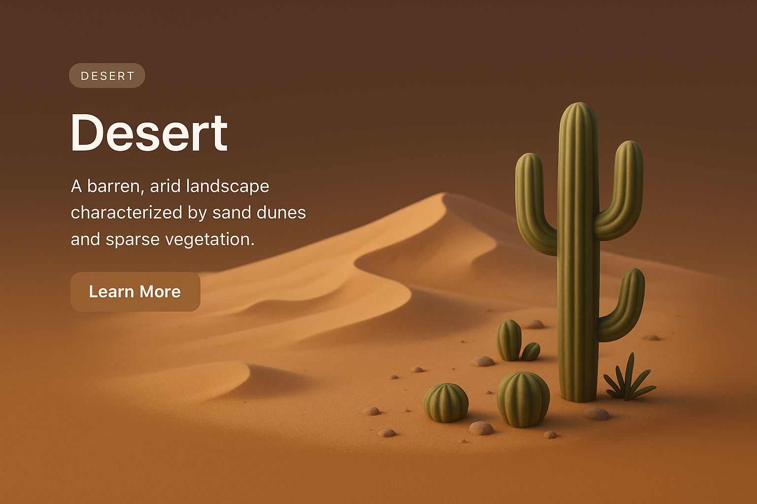 /Collection: /by davooda/Type: PNG/A beautifully designed 3D desert landscape featuring sand dunes and a cactus, with a smooth gradient background. The scene captures the essence of an arid environment.