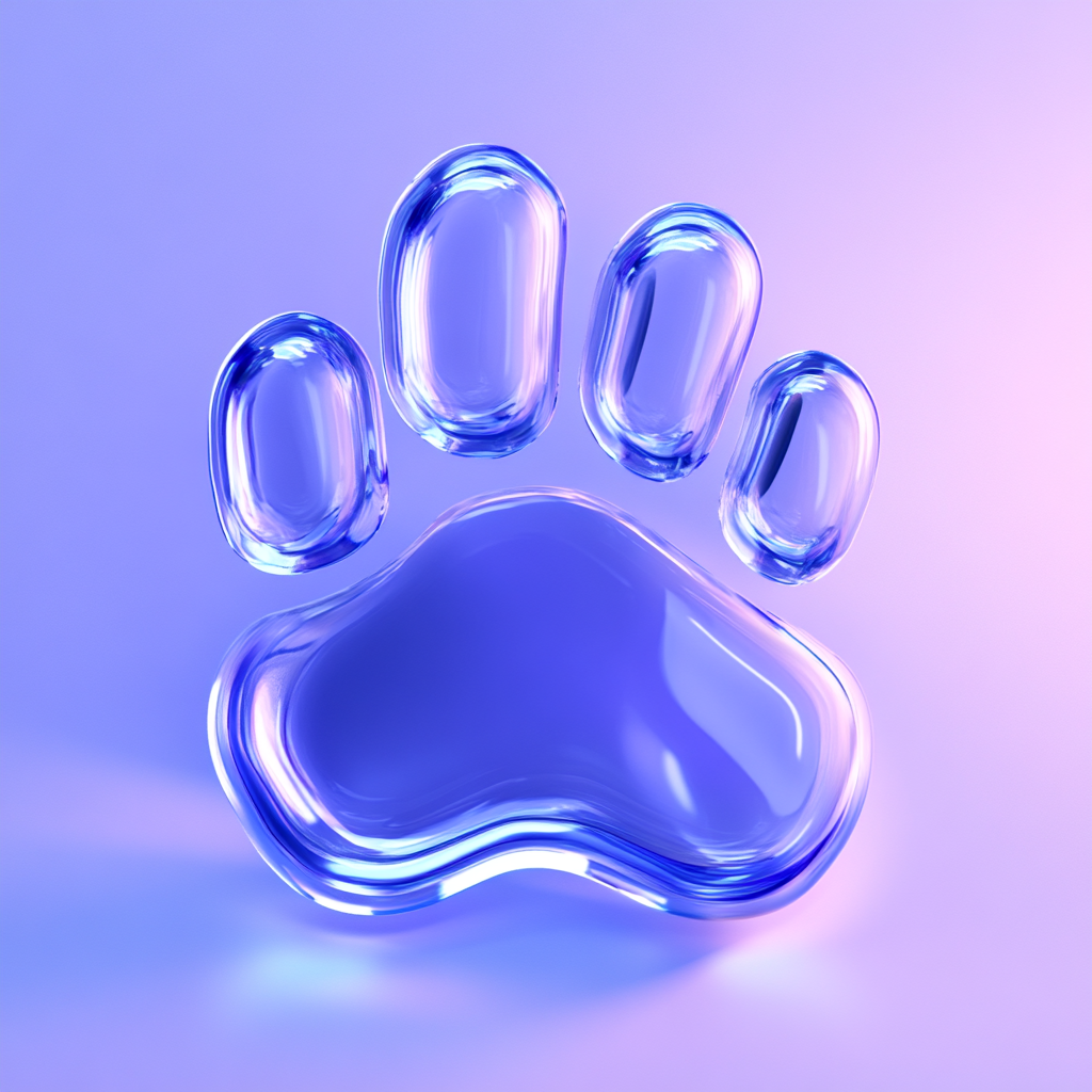 /Collection: /by davooda/Type: PNG/A modern graphic representation of a paw print made from a translucent material, set against a soft gradient background. Ideal for pet-related branding or animal welfare campaigns.
