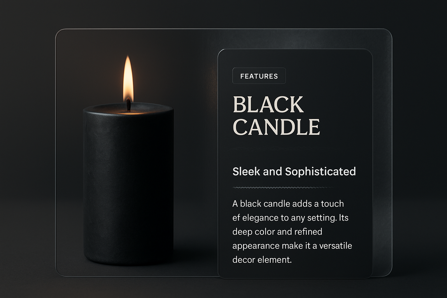 The image features a sleek black candle with a lit flame, accompanied by a modern text block. The design combines elegance and sophistication, suitable for web presentations.