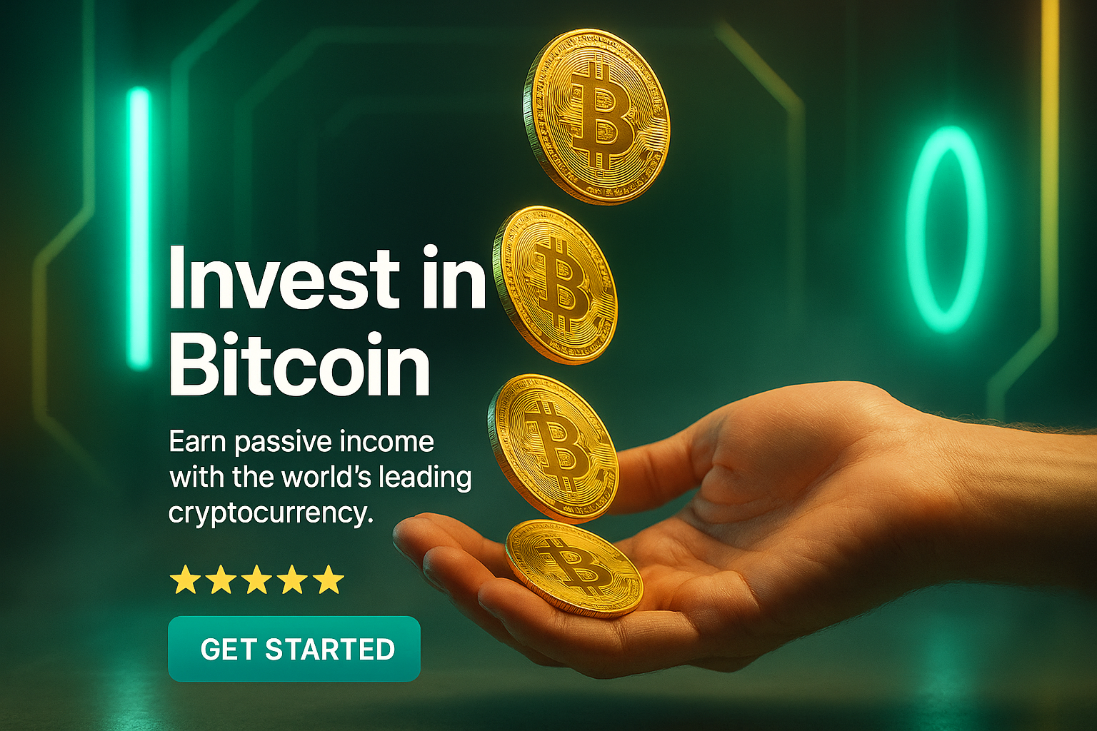 Promotional Cryptocurrency Investment Graphic with Bitcoin Coins