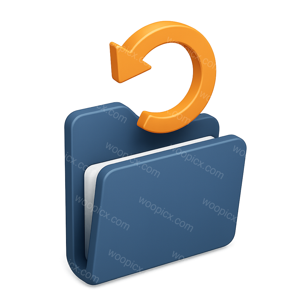 /Premium/Collection: /by davooda/Type: PNG/A vibrant isometric 3D icon depicting a blue folder with a volumetric orange refresh symbol above it, set against a dark background, creating a modern and sleek appearance.