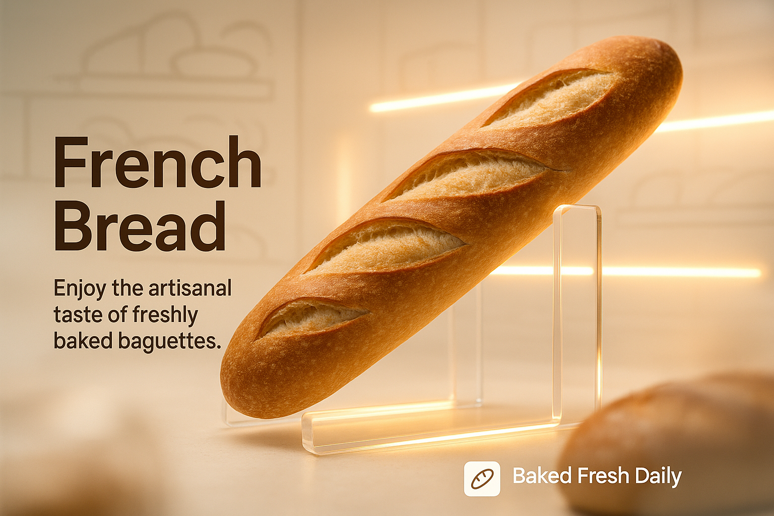 A visually appealing image showcasing a freshly baked baguette on a modern stand, emphasizing artisanal quality and freshness. Ideal for bakery promotions or culinary marketing.