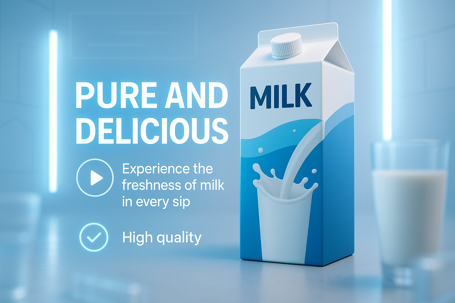 Stylish product mockup featuring a milk carton with a fresh and modern design, ideal for beverage advertising and promotional materials.