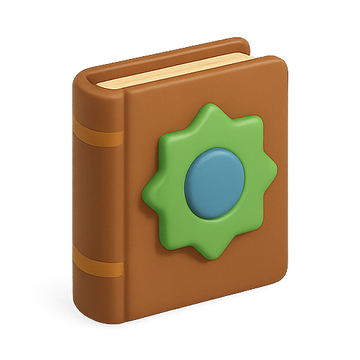 /Collection: /by davooda/Type: PNG/A whimsical 3D icon representing a book with a decorative gear-like element on the cover. This design is suitable for digital applications, educational content, or gamification interfaces.
