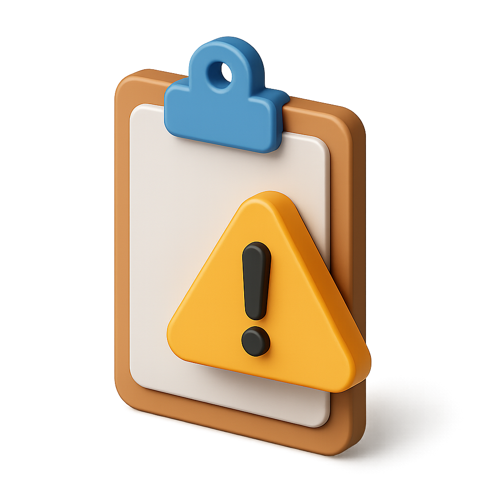 3D Warning Sign Clipboard Icon with Yellow Triangle