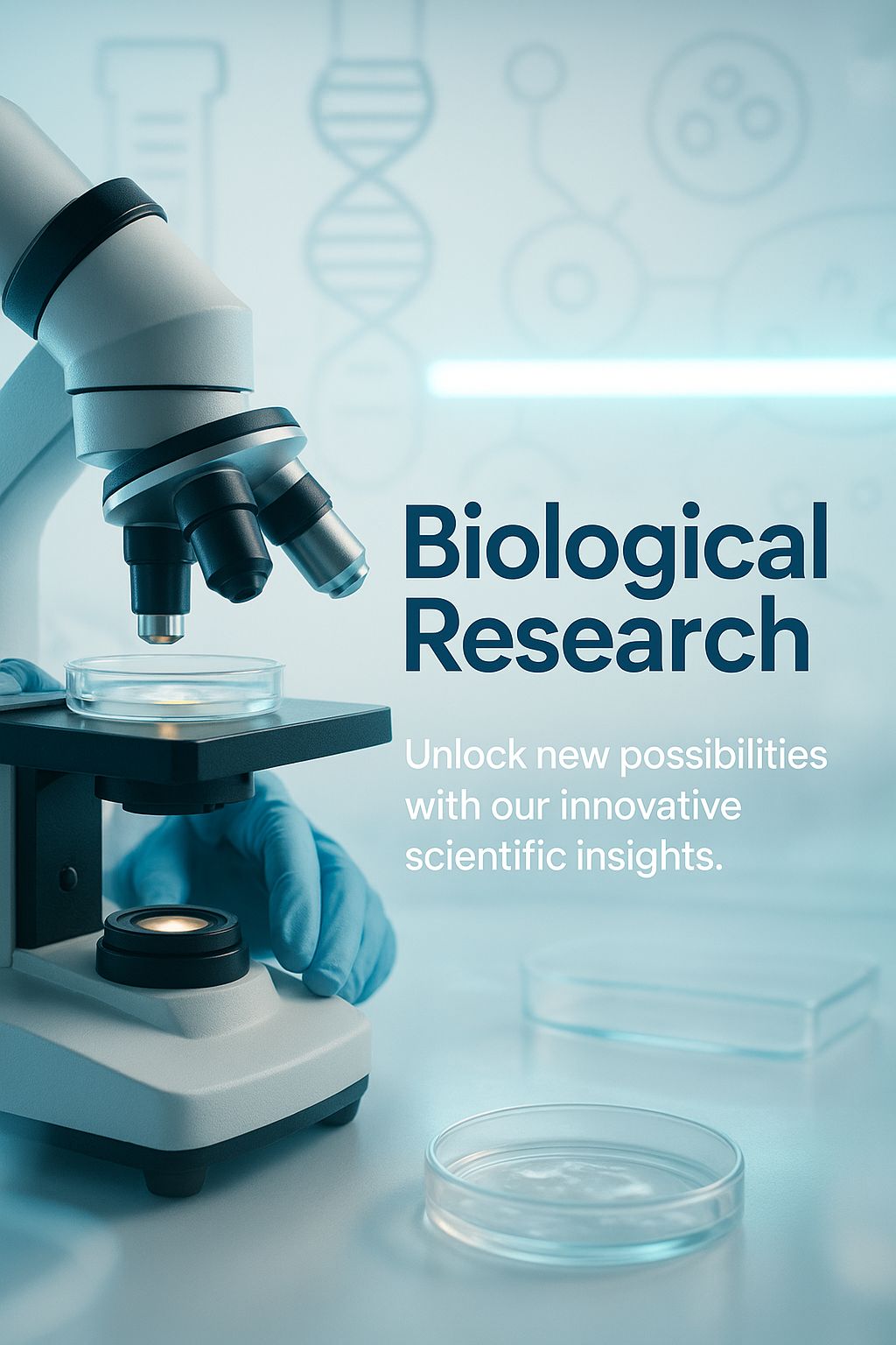 /Collection: /by davooda/Type: PNG/A modern laboratory setting showcasing a microscope and petri dishes, emphasizing biological research and scientific innovation. Ideal for educational and promotional materials in scientific fields.