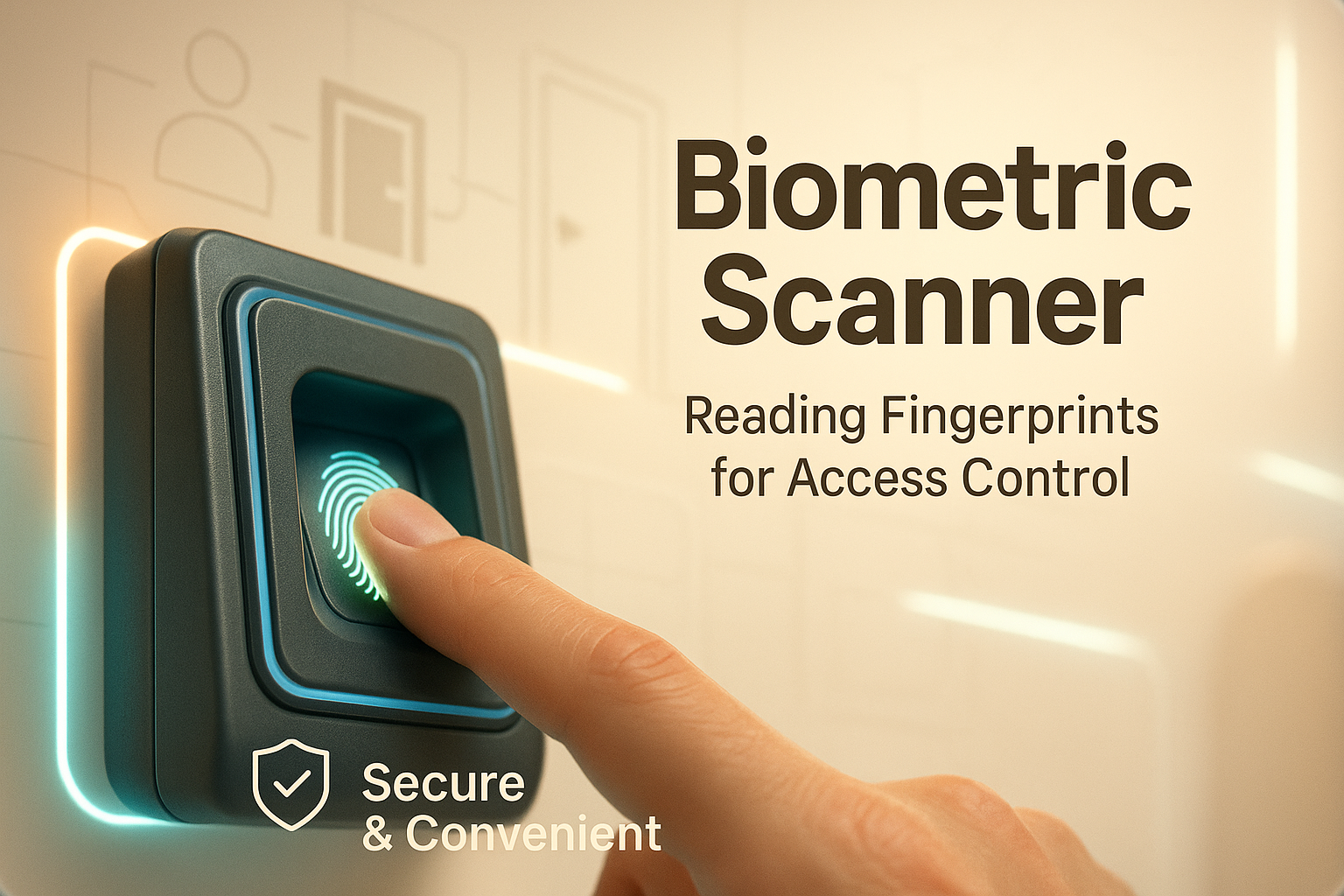 Modern graphic depicting a biometric scanner with a fingerprint icon, designed for security and access control concepts, ideal for tech or security-related content.