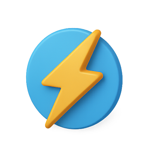 Stylized 3D icon featuring a yellow lightning bolt on a blue circular background, suitable for digital applications and branding.