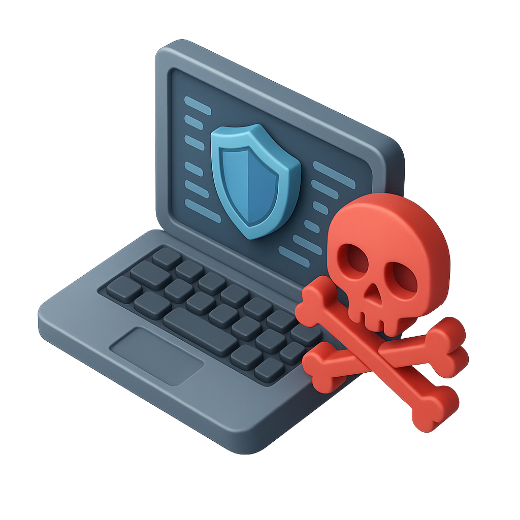 Cybersecurity Awareness Graphic Featuring Laptop and Skull Icon