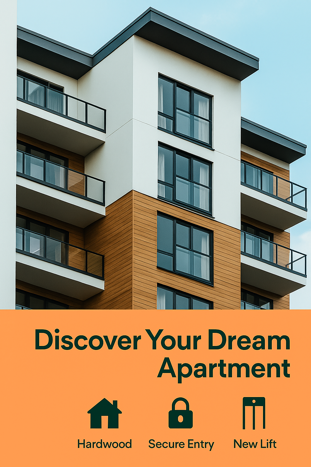 Real Estate Promotional Graphic Featuring Modern Apartments