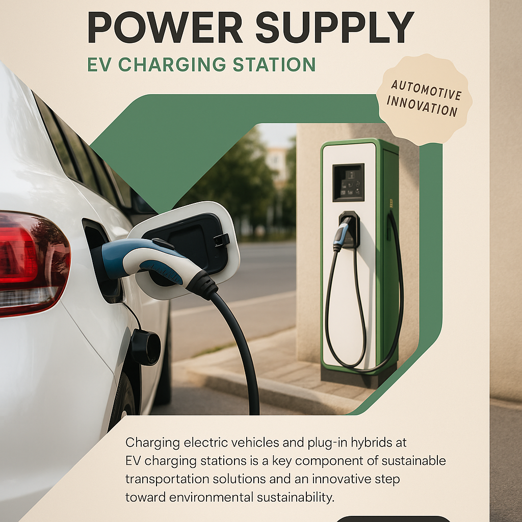 /Collection: /by davooda/Type: PNG/A sleek electric vehicle charging station showcases modern automotive technology. The image features a car connected to the charger, emphasizing sustainability and innovation.