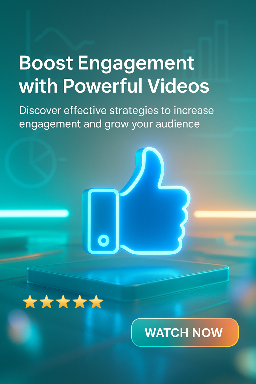 Modern promotional graphic featuring a glowing thumbs-up icon, emphasizing strategies to boost video engagement. Ideal for digital marketing campaigns.