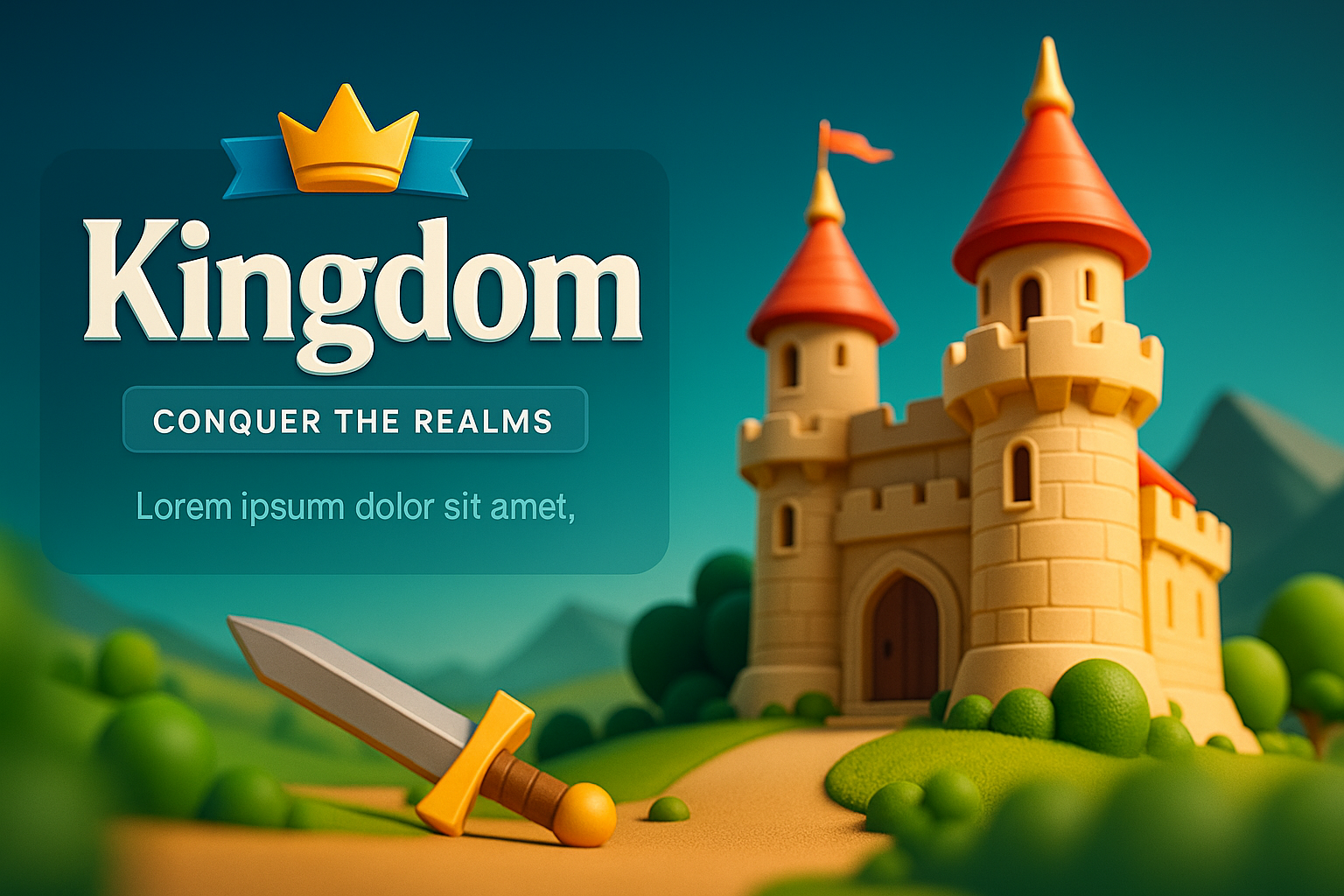 3D Kingdom Illustration with Castle and Sword Elements