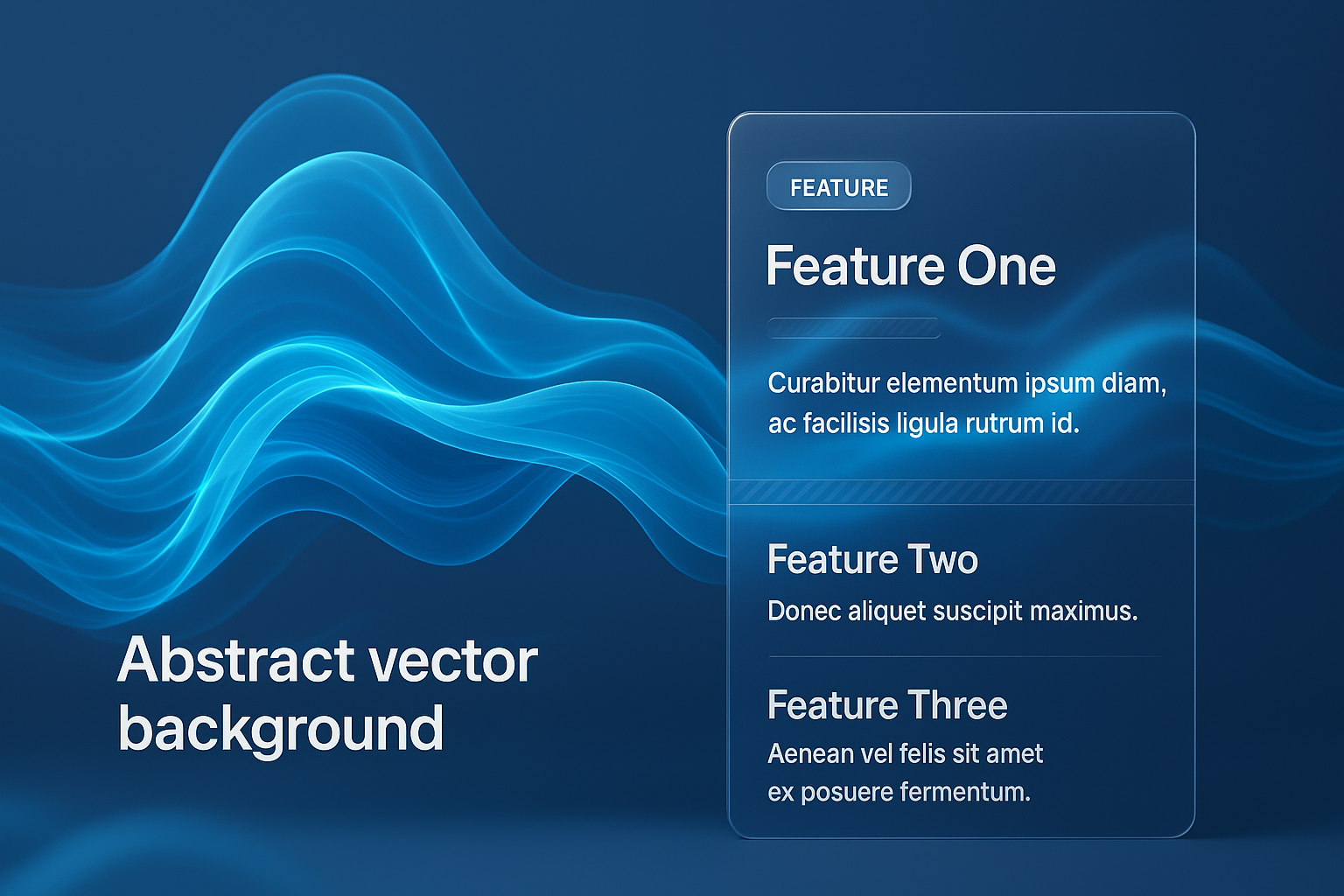 /Collection: /by davooda/Type: PNG/A smooth abstract vector background featuring flowing blue wavy lines. The design includes a transparent feature block showcasing three features, enhancing visual appeal.