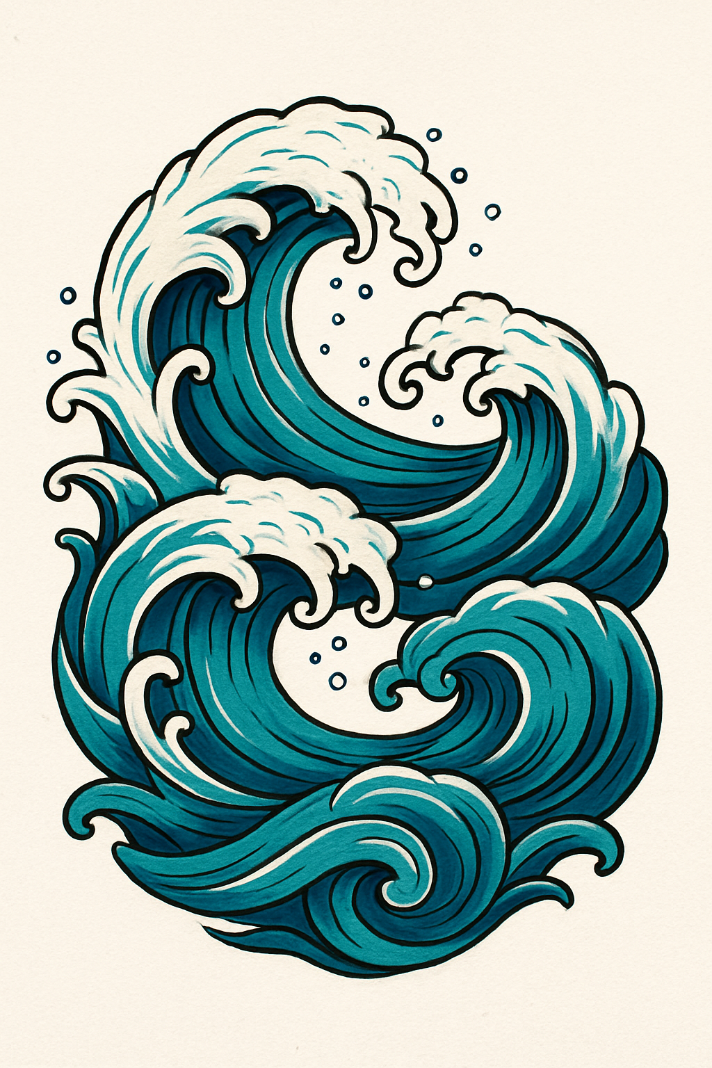 Stylized Ocean Wave Illustration with Dynamic Curves