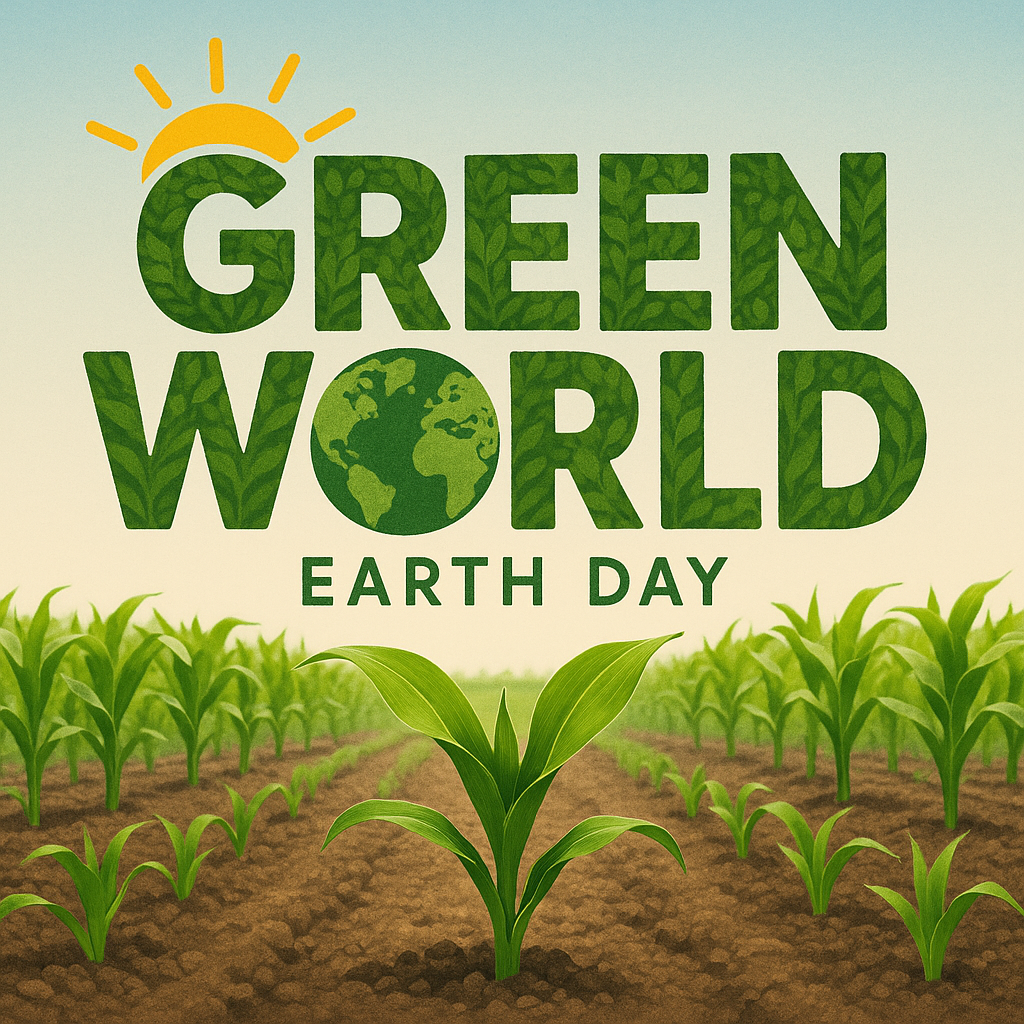 /Collection: /by davooda/Type: PNG/Vibrant graphic celebrating Earth Day with green plant imagery and globe, ideal for environmental campaigns and social media posts promoting sustainability.