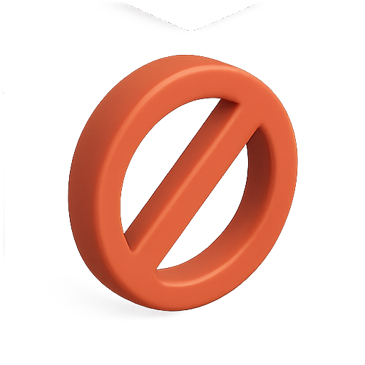 A three-dimensional representation of a no symbol, featuring a bold orange hue. This graphic is suitable for warning signs, prohibition messages, or visual communication emphasizing restrictions.