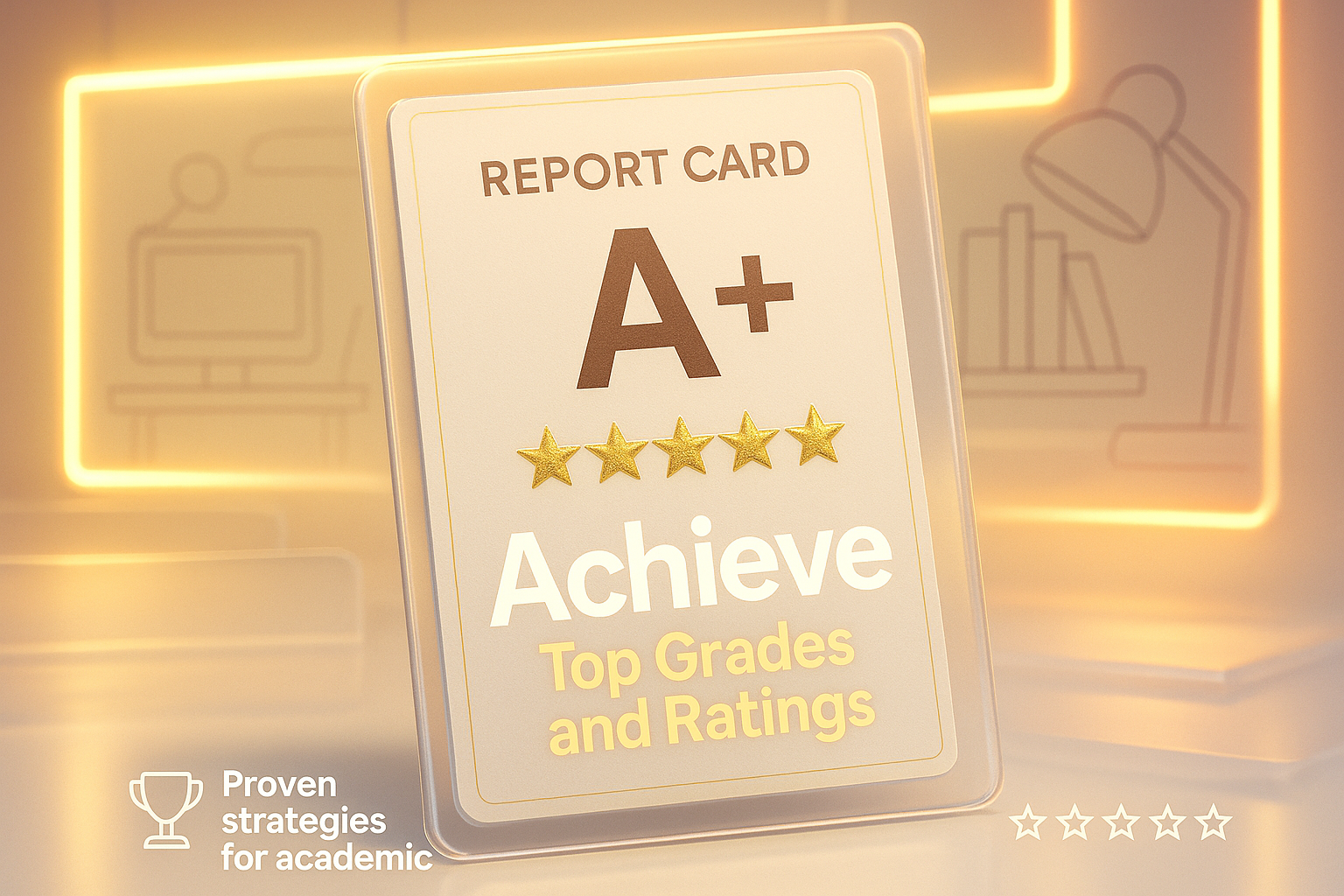 Promotional Graphic for Academic Success Featuring A+ Report Card