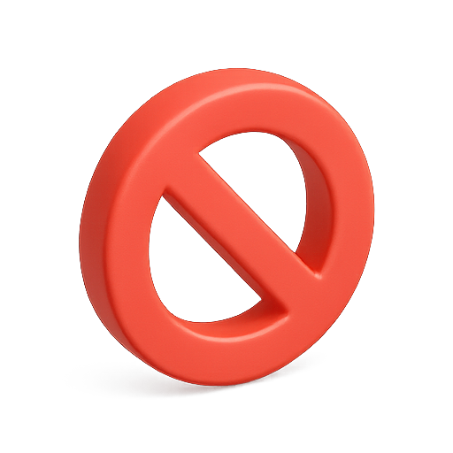 A three-dimensional representation of a bright red 'no' symbol, ideal for use in digital graphics, safety messages, or prohibition signage.