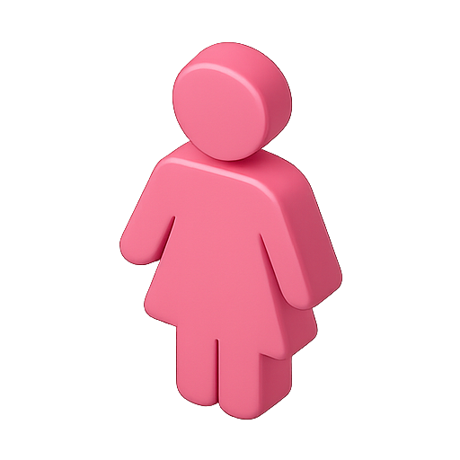 /Collection: /by davooda/Type: PNG/A 3D-rendered pink female figure icon designed for digital use, ideal for gender representation in various applications such as websites, infographics, and social media.