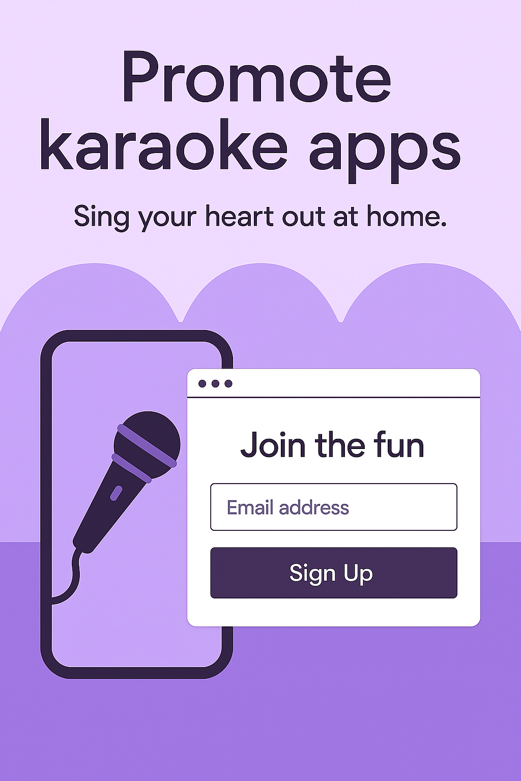 Karaoke App Promotion Graphic with Signup Call-to-Action