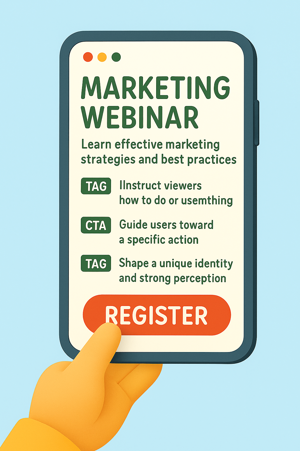 Engaging digital graphic showcasing a mobile device with a webinar registration call-to-action. Ideal for marketing campaigns and online events.