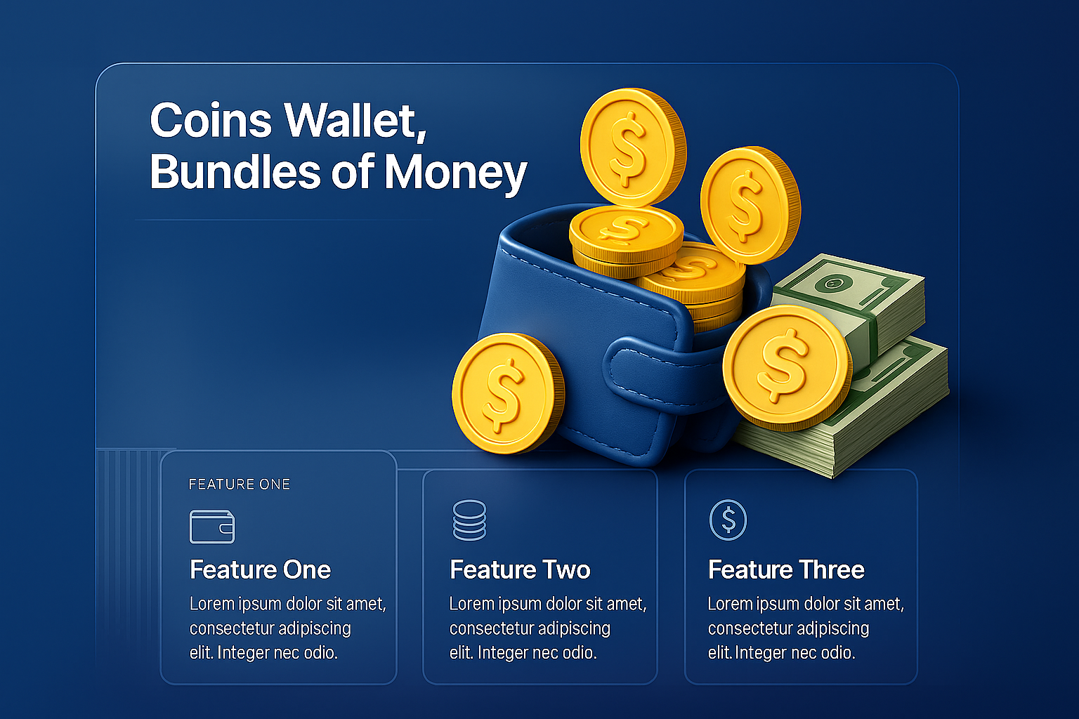 3D Coins Wallet with Bundles of Money and Features