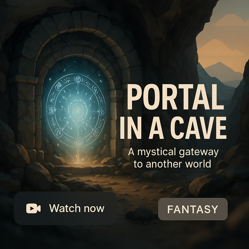 Fantasy Artwork Featuring a Mystical Portal in a Cave