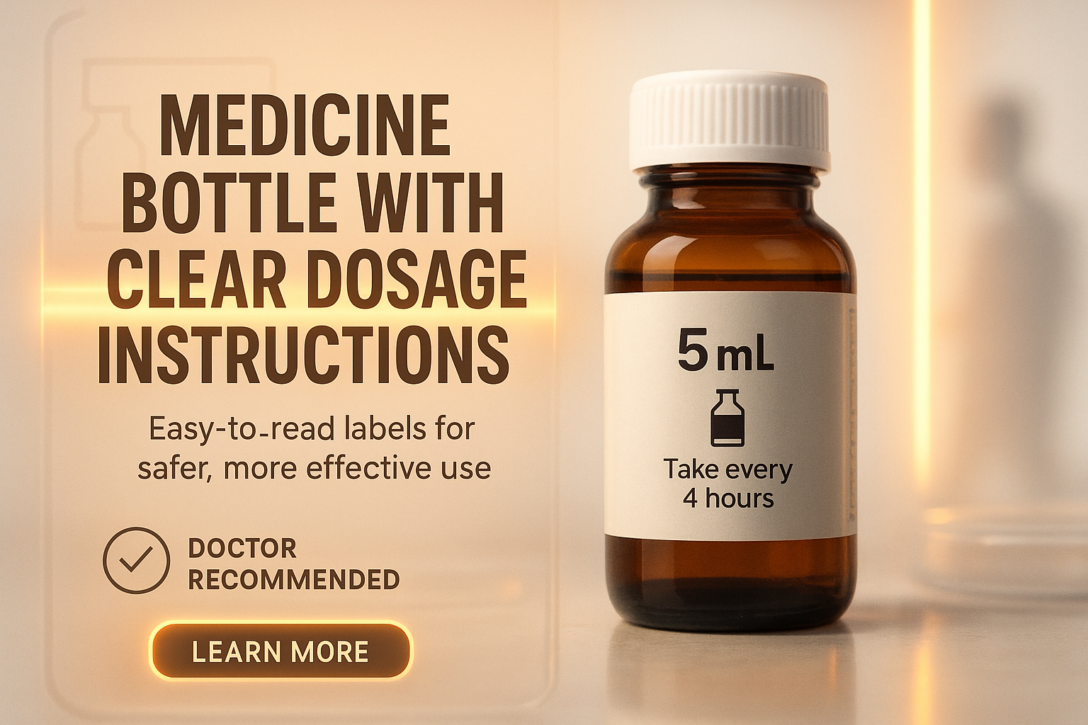 /Collection: /by davooda/Type: PNG/Professional product mockup showcasing a medicine bottle with clear, easy-to-read dosage instructions, ideal for health-related marketing and educational purposes.