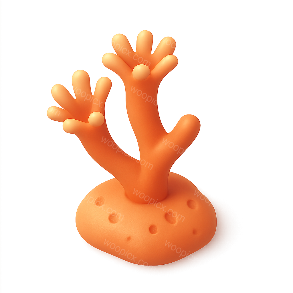 /Premium/Collection: /by davooda/Type: PNG/A stylized 3D coral polyp icon featuring a vibrant orange color. The design includes branching structures with rounded tips and a textured base, all presented in an isometric view with a soft, glowing background.