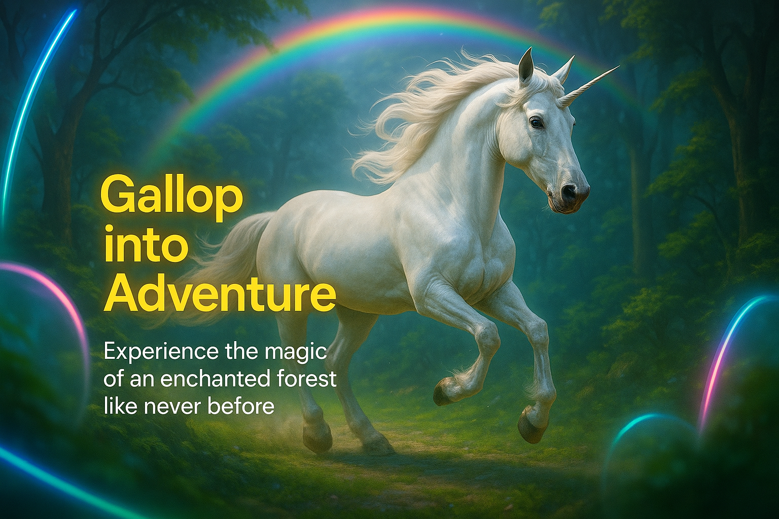 Fantasy-Themed Promotional Image Featuring a Unicorn